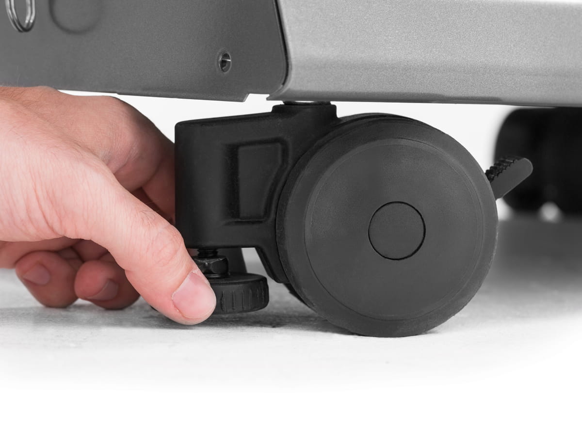 - 4 obrotowe kółka 7,6 cm z możliwością blokady. Dwa przednie kółka Level Q™ z możliwością poziomowania.