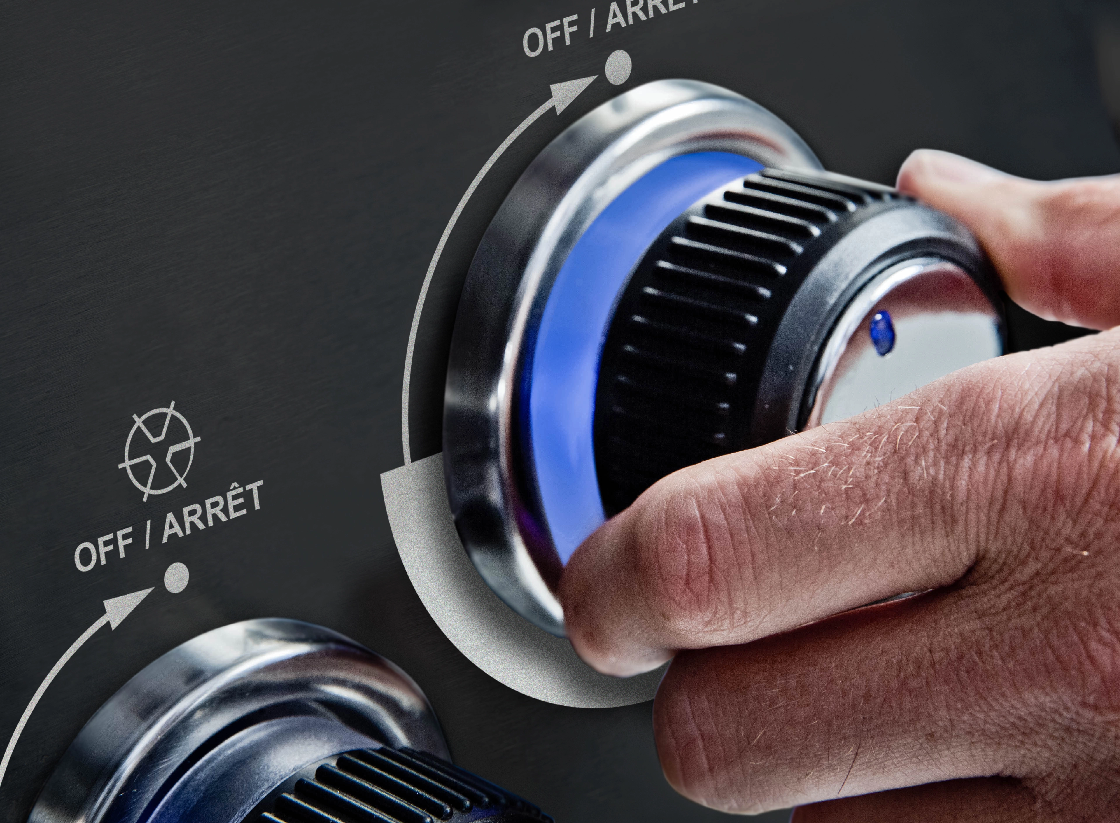 - Podświetlane pokrętła na niebiesko w ilości 6 sztuk