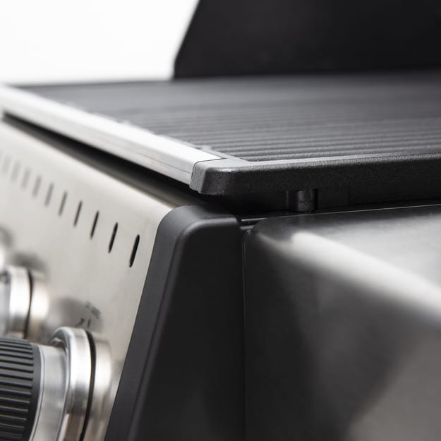 - Górny ruszt wykonany z prętów ze stali szlachetnej z tylną ścianką zapobiegającą spadaniu potraw o wymiarze 64 x 17 cm
