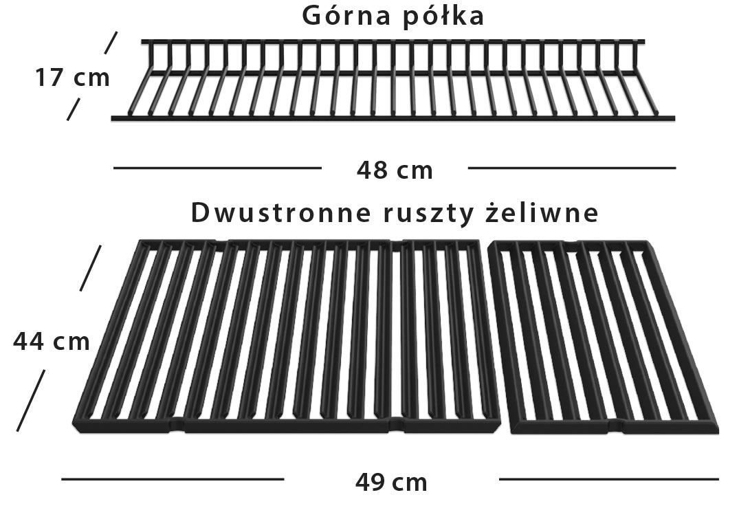 - Wymiar rusztów głównych 48 x 44 cm