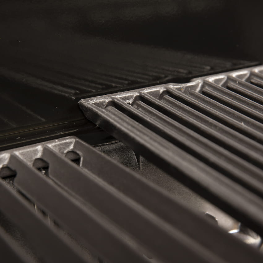 - 2 wytrzymałe, dwustronne ruszty żeliwne Flav-R-Cast™ ( 1x podwójny ruszt, 1x pojedynczych )