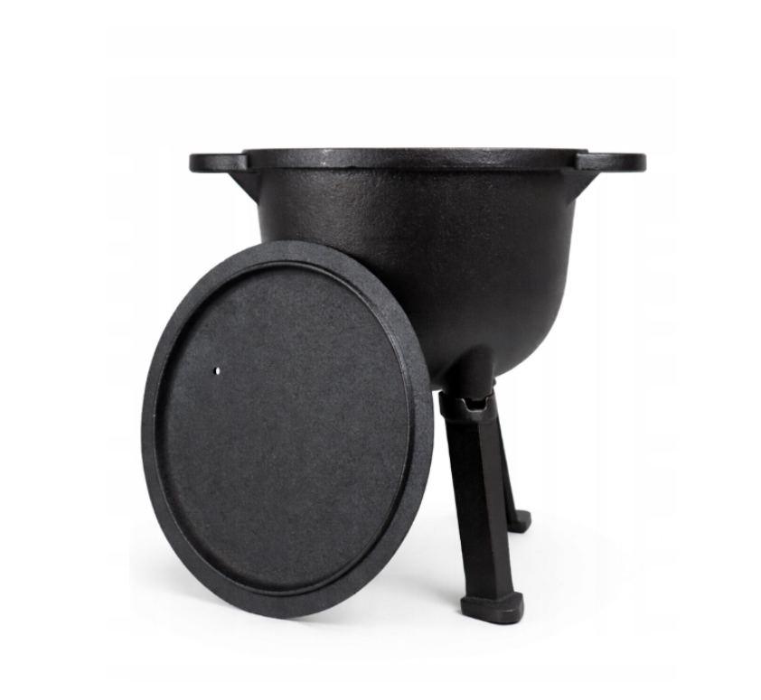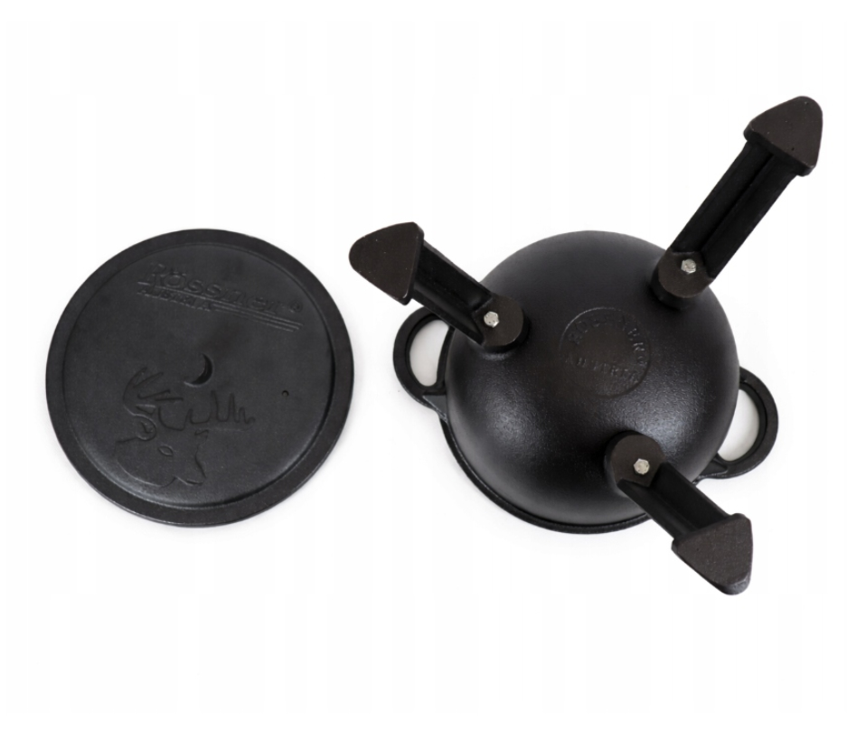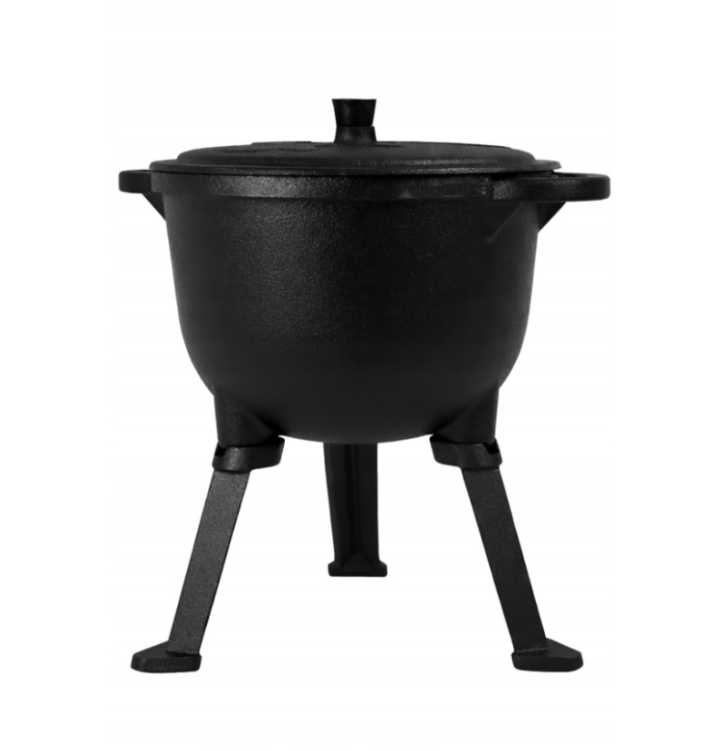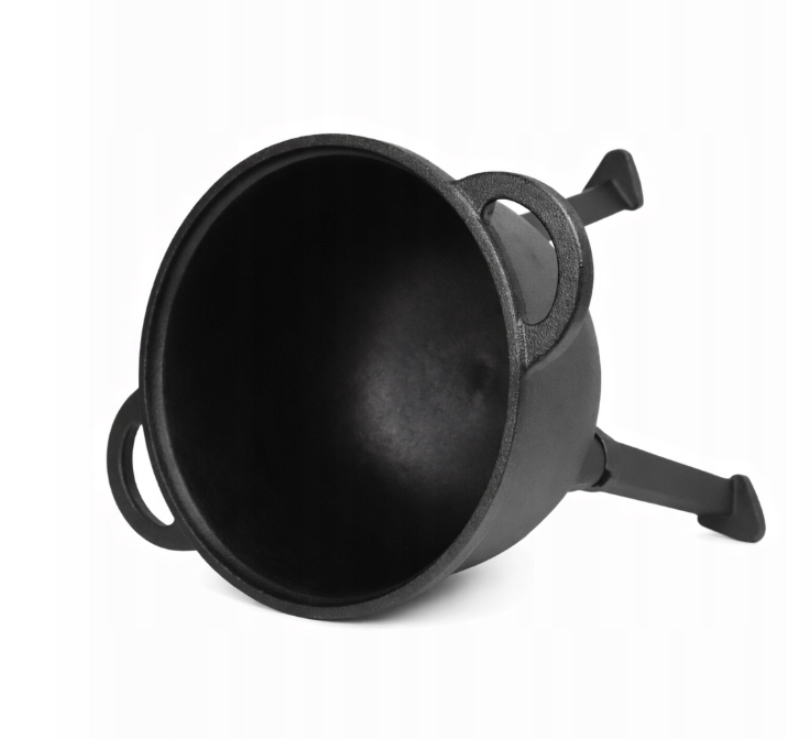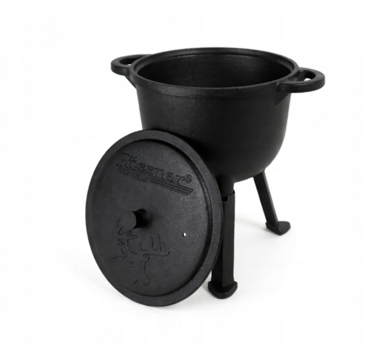 3 stabilne żeliwne nóżki – idealne do ustawienia nad żarem lub ogniskiem