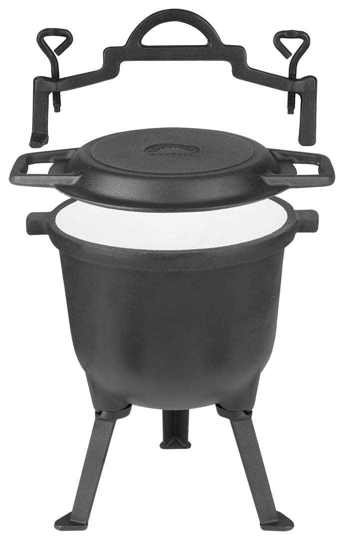 Kociołek myśliwski Rossler o pojemności 8 litrów emaliowany z patelnią grillową będzie świetną atrakcją na spotkanie przy ognisku. Wspólne przygotowanie potrawy i jego zamykanie sprawi wszystkim wiele radości. Potrawy jakie z niego wychodzą są znakomicie dopieczone i mają niepowtarzalny smak i aromat.