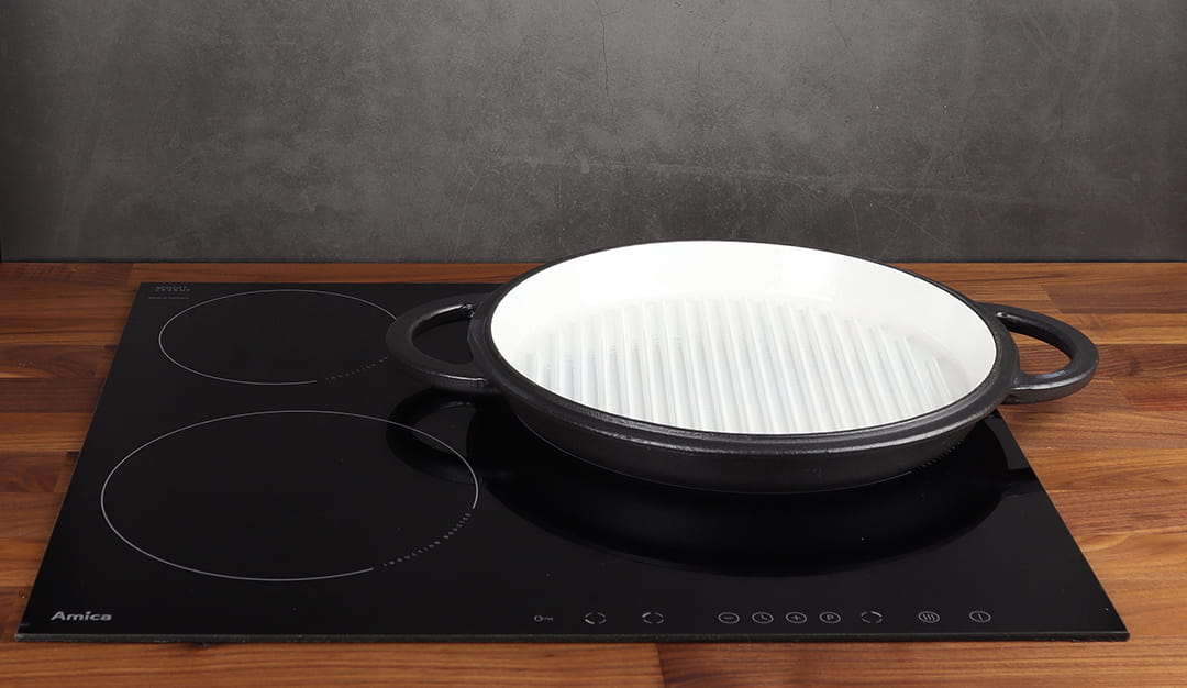 Patelnię grillową można również używać w domu i jest przystosowana do wszystkich kuchni również indukcyjnych