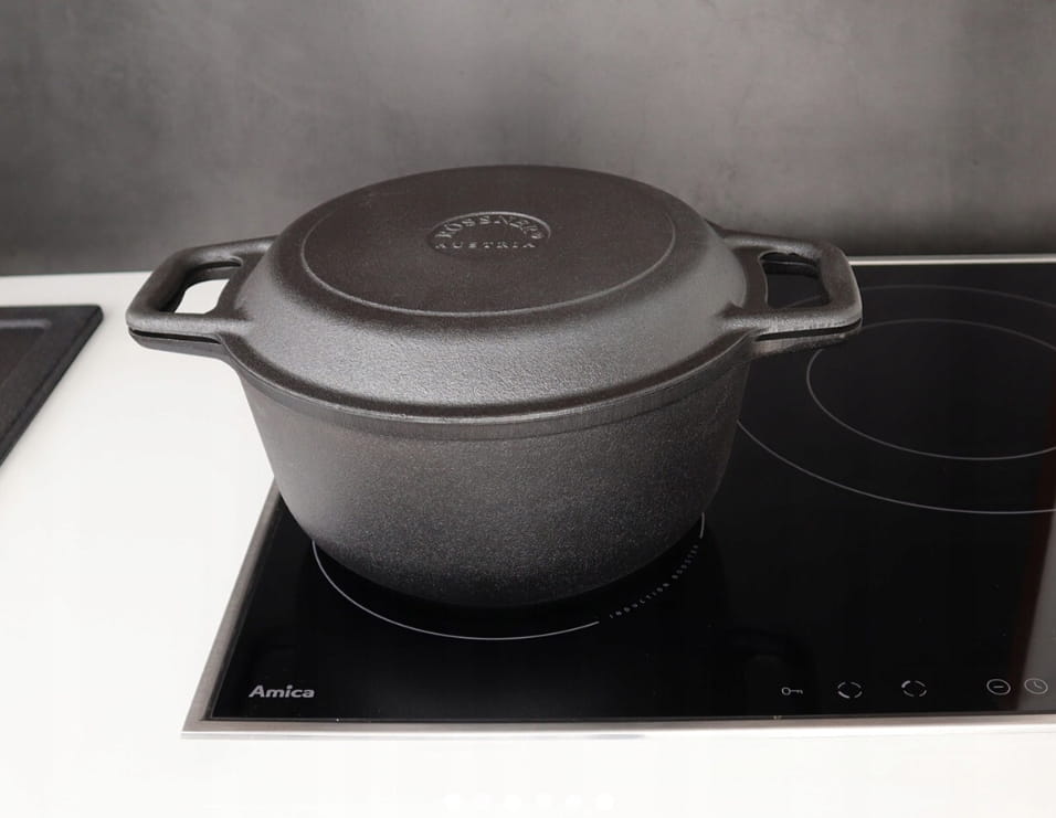 Patelnię grillową jak i garnek można również używać w domu, naczynia przystosowane są do wszystkich kuchni również indukcyjnych