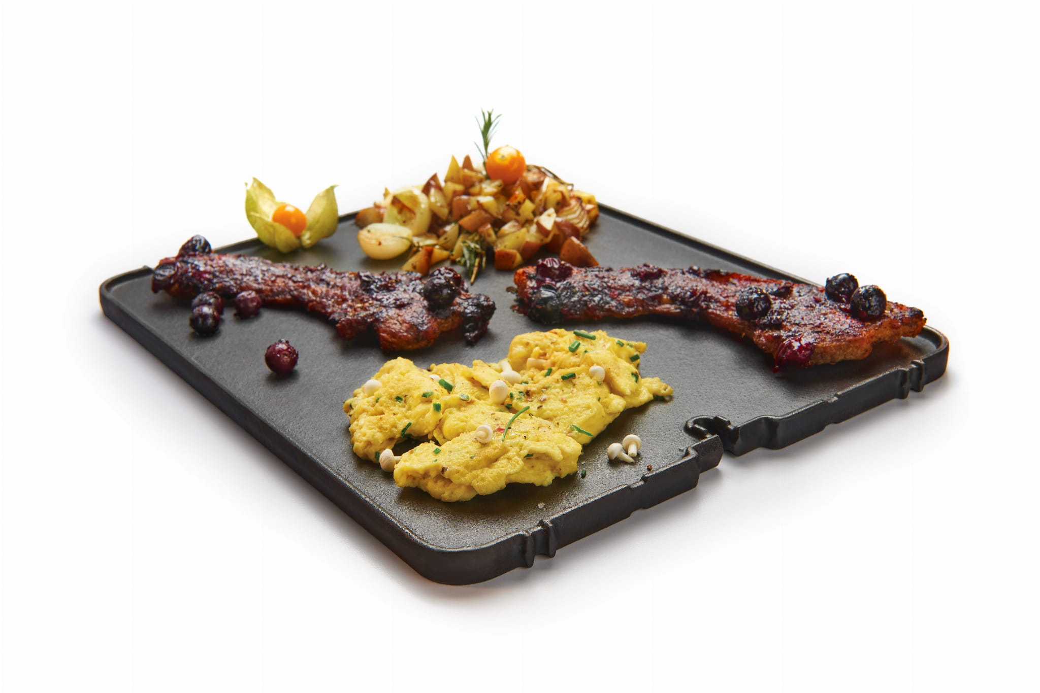 Na ryflowanej stronie możemy grillować mięsa oraz warzywa, natomiast powierzchnia gładka może służyć do przygotowywania ryby, owoców morza lub jajek. Płytę umieszcza się w miejsce jednej części rusztu.