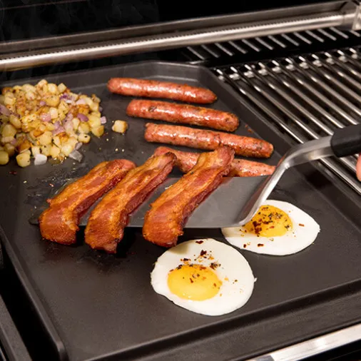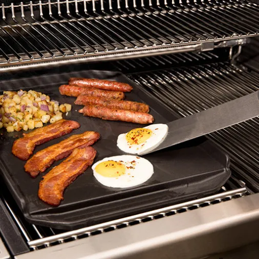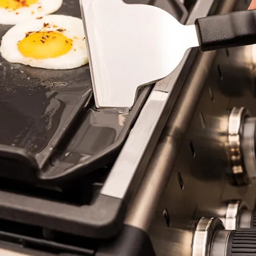 Dzięki wysokim krawędziom ( dziesięciokrotnie wyższe od tradycyjnej płyty żeliwnej ) idealnie sprawdzi się do grillowania mięs i warzyw które poprzez swój rozmiar łatwiej jest obracać.